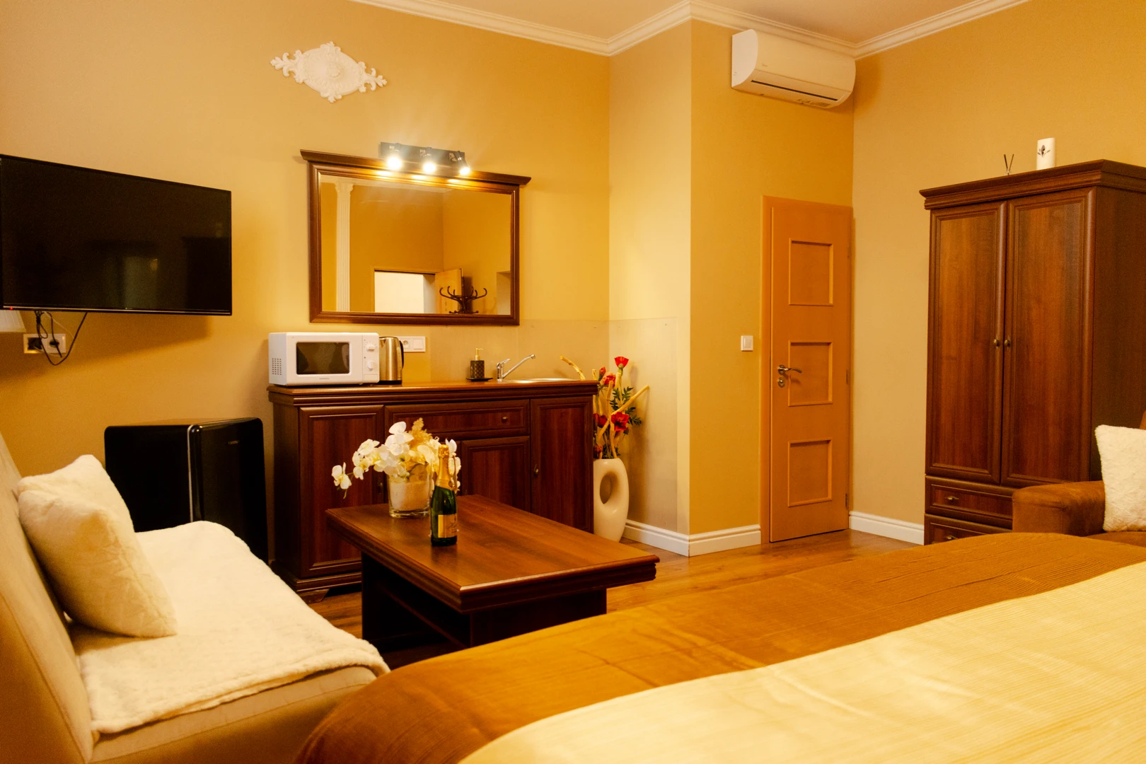 Vaše ráno začína s možnosťou exkluzívneho dovozu raňajok od Bagetka Puccino priamo na vašu izbu. Užite si čerstvé raňajky, ktoré vám dodajú energiu na celý deň.